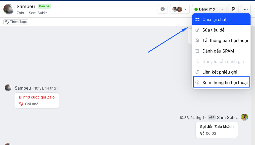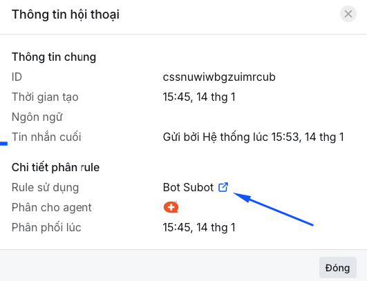 Để biết hội thoại đang được phân phối theo quy tắc nào, chỉ cần nhấn vào dấu … góc trên bên phải hội thoại, chọn Xem thông tin hội thoại.