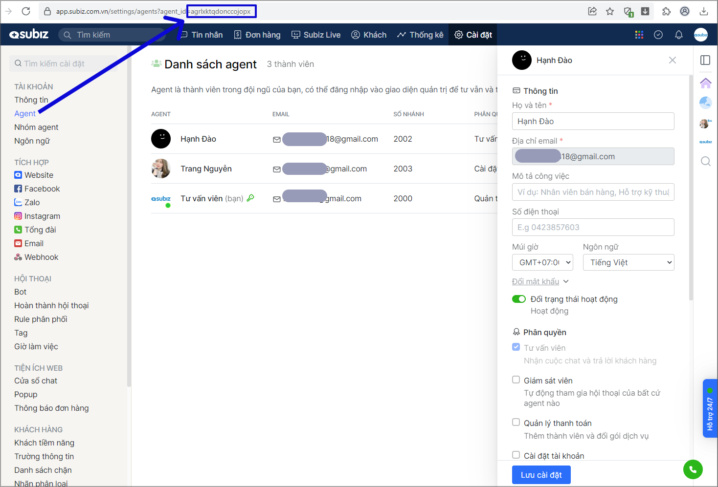 - Lưu ý: Mỗi agent sẽ có 1 mã định dạng, bạn lấy mã agent bằng cách chọn chỉnh sửa agent, xem trên tab trình duyệt hiện “agent_id”.