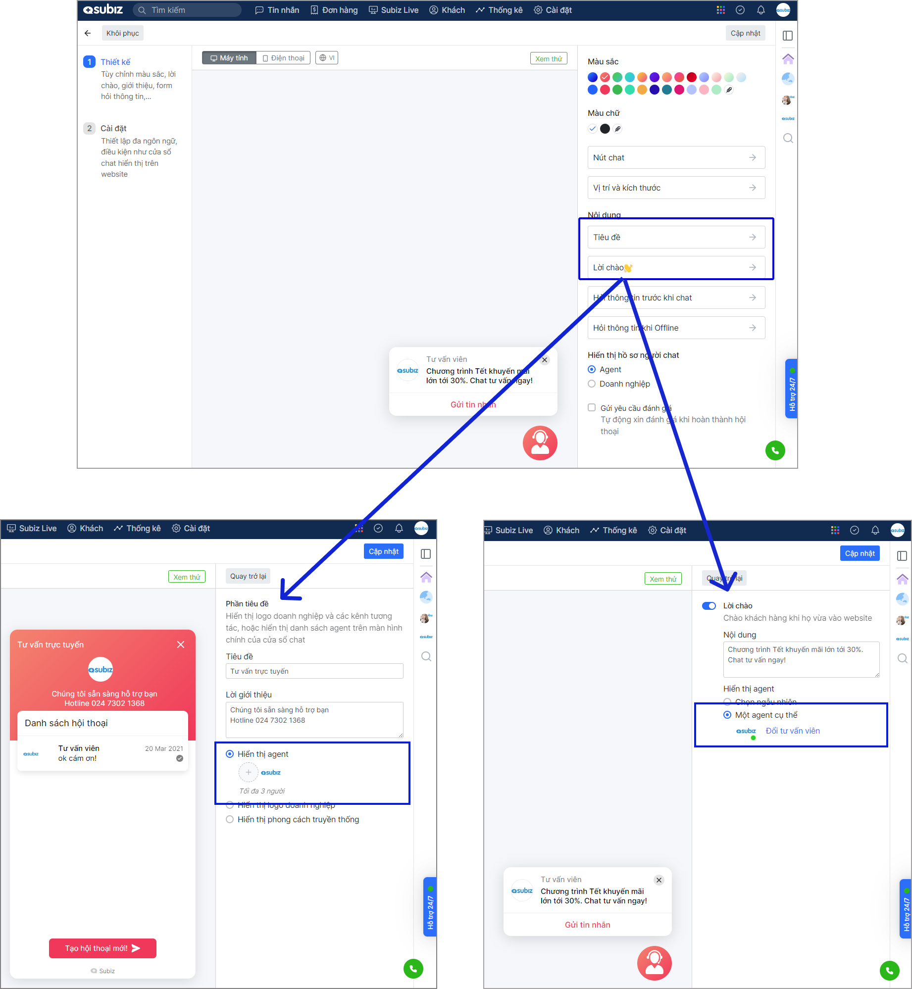 - Cá nhân hóa giao diện cửa sổ chat cho từng website khác nhau.