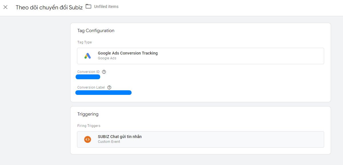 - Chú thích: Thường sau 24h cài đặt GTM thì GA4 và Google Ads sẽ nhận được báo cáo sự kiện Subiz.