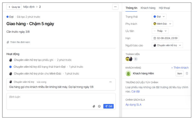 - Đặt mục tiêu SLA cho phiếu ghi