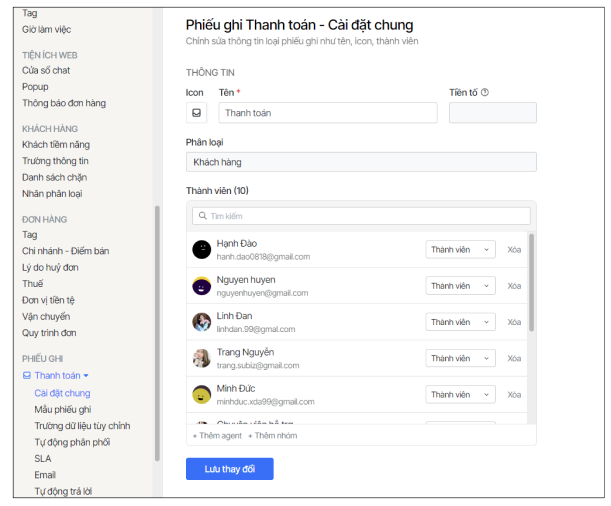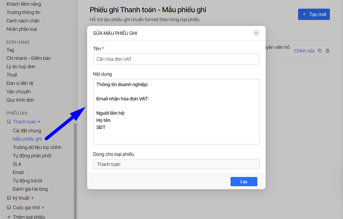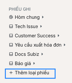 Khi cần chia phiếu ghi cho từng bộ phận khác nhau hay chia từng loại yêu cầu hỗ trợ của khách hàng, bạn sẽ cài đặt thêm loại phiếu ghi.