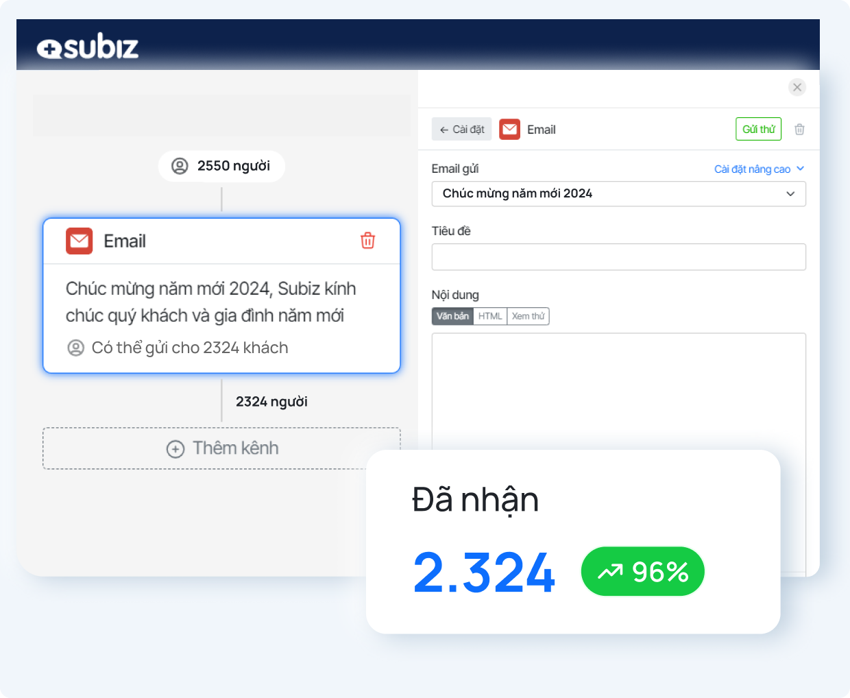Triển khai chiến dịch email marketing trên Subiz