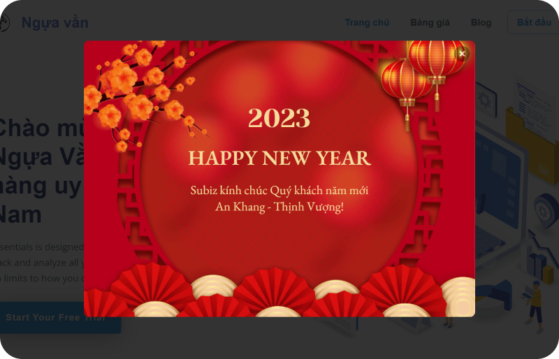Popup - cửa sổ nhỏ tự động xuất hiện trên màn hình khi khách hàng đang truy cập Website, chứa nội dung đa dạng như quảng cáo, khuyến mãi, giới thiệu sản phẩm, thu thập thông tin khách hàng…