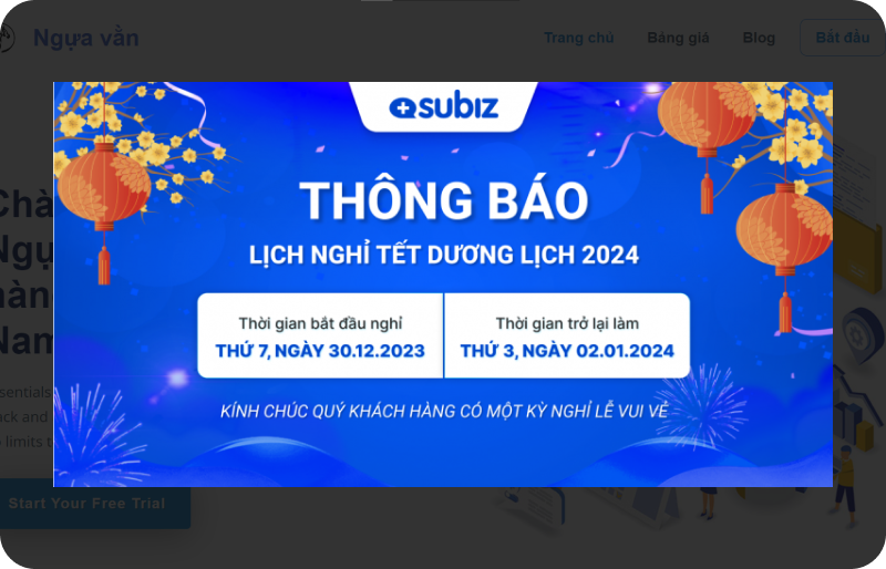 Dùng để thông báo lịch nghỉ lễ, tình trạng website, thay đổi chính sách...