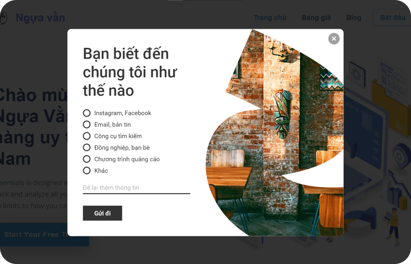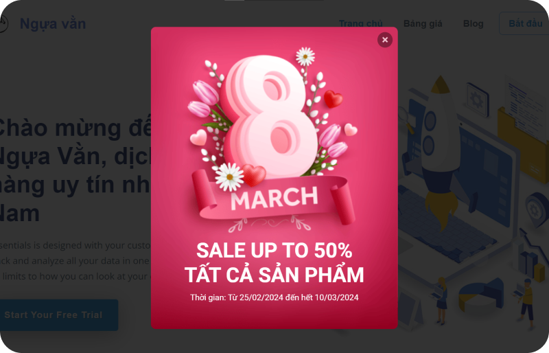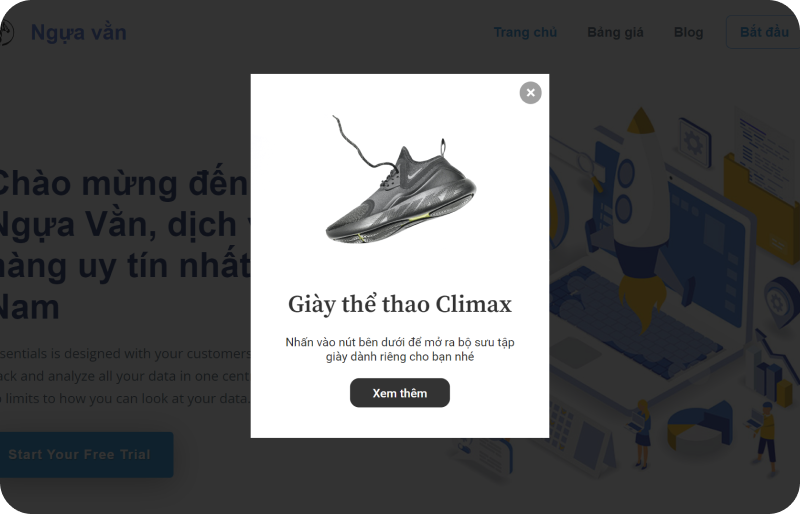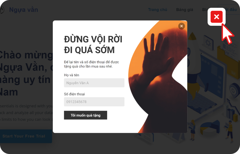 Popup xuất hiện khi khách có ý định thoát trang, giúp giữ chân khách hàng và tăng tỷ lệ chuyển đổi.
