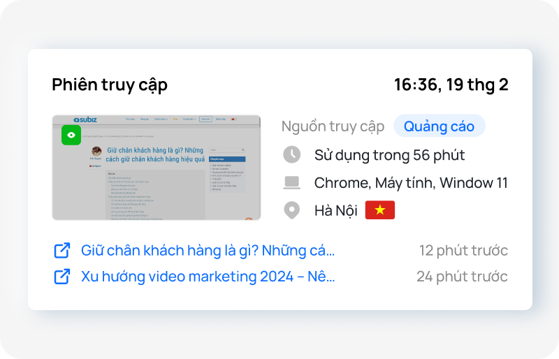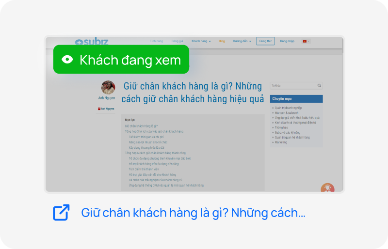 Xác định khách hàng đang ở bài viết nào. Subiz hiển thị rõ tiêu đề, đường link dẫn trang khách xem.
